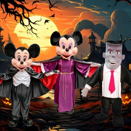 Pair Vampire Mickey with Minnie for the ultimate Halloween duo. Realistic and fun, these mascots are sure to impress at any event.
